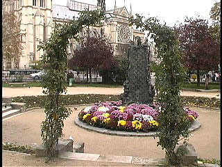 Saturday was a cold, windy day with some rain but it did not stop all the tourists. In fact, walking along the quai it was so cold that I had to nip at my bottle of vodka to stand it. The park at the east end was worth it. I descended the stairs at Place de Point Neuf and, ducking under the branches of some trees, walked to the very tip of the park and the island, looking at the river joined together with the wind blowing in my face. Then I walked west along the northern quai till I came to a docked river boat. I walked out on the boat to the bar, looking at all the bottles and thinking now nice it would be to have a real cocktail if I had money. Ah, yes, I would come back. Another time I would come back for gin and Campari, shaken and cold and poured into a martini glass. Then I walked the northern quai to Boulevard du Palais where all the flower shops begin. They were as colorful as the bottles in back of the bar and there were seagulls perched along the wall. It was nice to see seagulls rather than pigeons. I had seen enough pigeons on Boulevard Clichy, feeling on the scraps of food along with the rats before the morning cleanup crew arrived (dans le rue à paris, part 1), that any other bird was a welcome sight. Continuing on I saw restaurants in the inner, open courtyard of the island. Another time, another time! Then I was down at the western end where, after having my bag checked, I descended the narrow staircase to the memorial for the French killed at the Nazi death camps. Was this one more piece of the hoax, as Iranian president Ahmadinejad has suggested that the death camps were? Not likely. With the river flowing down below and splitting into two parts, and a silence that can almost be heard, it is a solemn reminder of the deep fallibility of man. Back up on top, I walked over to the park at the south-east end of the Notre Dame. It is a beautiful little park with many trees and benches. The leaves were turning yellow and brown. I sat on a bench and watched the sun going down in back of a swirling bank of silver clouds, some dark, others light. The ending to my walk around the island was warmer and happier than the beginning. I took an ocassional glance at the Notre Dame with its "flying buttresses" that I had read about. It looked old, brittle, the flying buttresses a little silly. The trees and the color of the leaves, with the setting sun, even though in decline, looked fresh and alive. I sipped a little vodka from my bottle and felt the glow of the sun in my stomach. Later on I walked back to Pigalle.