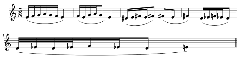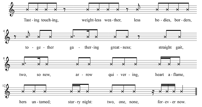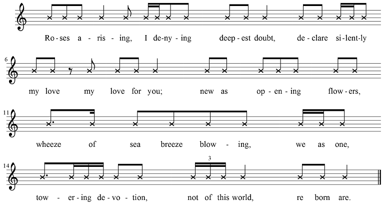 Note: For any note marked x above, the notes E, F, A#, or B may be intoned.